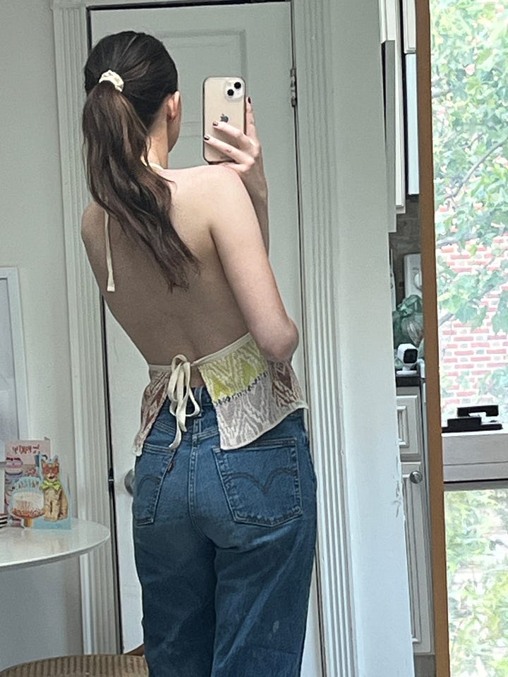 I wore my Levis, Coach flip flips (that I got last summer for $2 at a yard sale), and this cute backless top from Anthro.