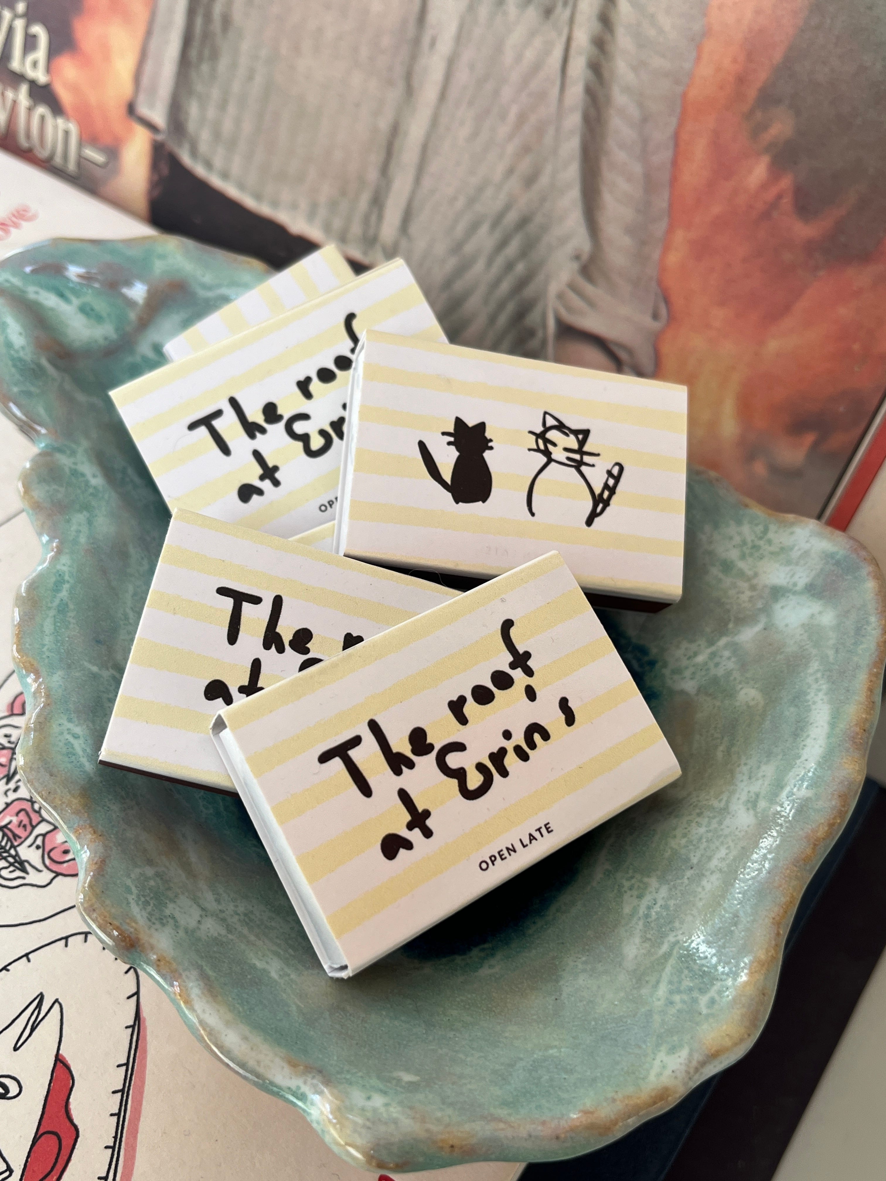 What I love the most about having outdoor space is hosting. My rooftop came with an outdoor dining table and chairs, a grill, and an umbrella so I was ready to start having friends over. I quickly did what I do at each place I live and designed and ordered custom matchbooks.