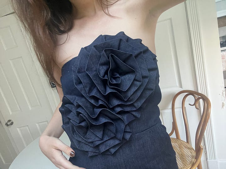 I wore this fun Yumi Kim jumpsuit that I had rented from Nuuly, it was now time to return it and I hadn’t had an opportunity to wear it yet, so chose tonight. The fit was a little off but I loved this flower(?)!